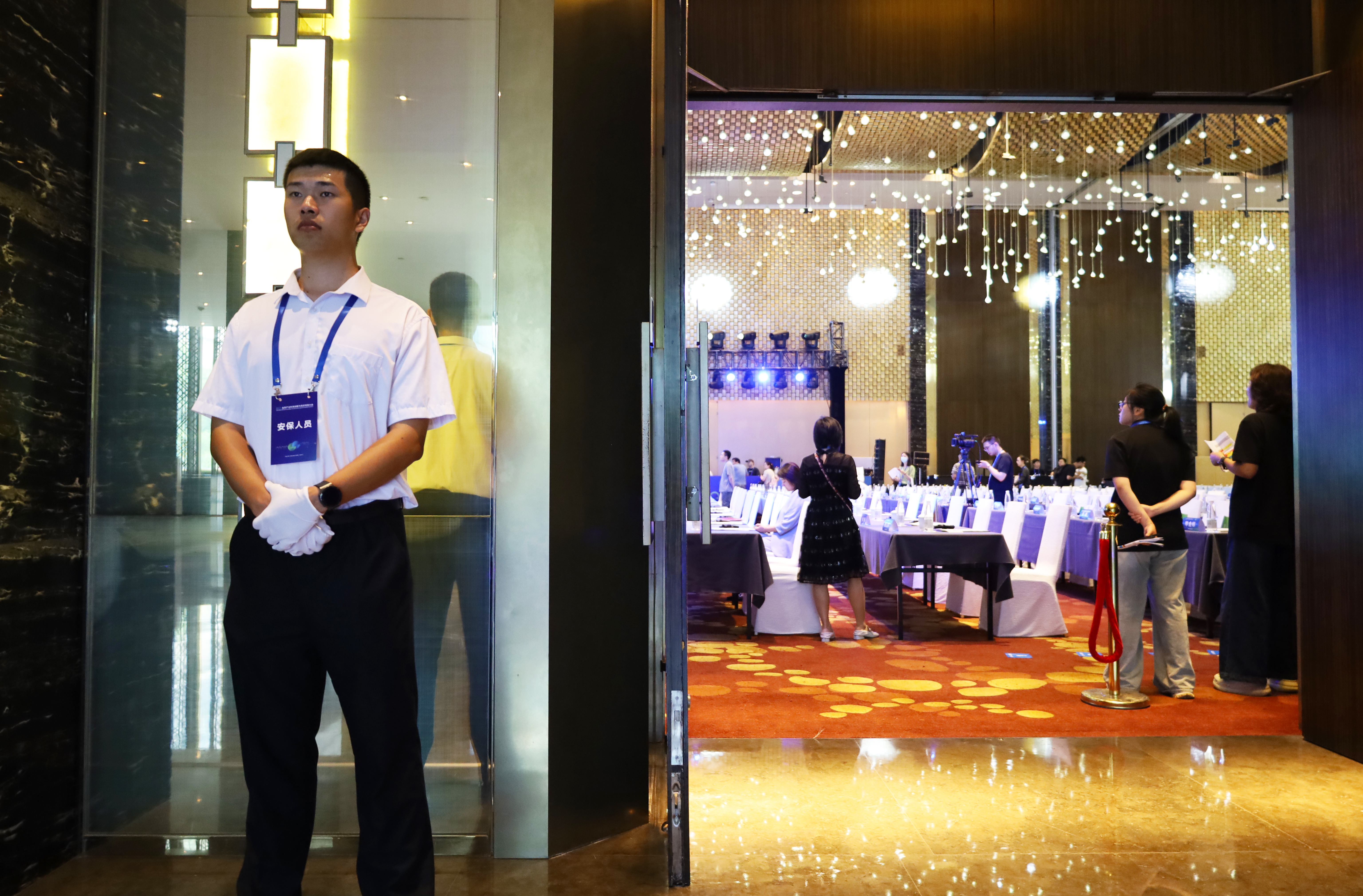 在大會(huì)現(xiàn)場(chǎng),南京市保安服務(wù)有限公司的安保團(tuán)隊(duì)按照預(yù)定的安保方案,對(duì)會(huì)場(chǎng)入口、通道等重點(diǎn)區(qū)域進(jìn)行了嚴(yán)密布控。他們嚴(yán)格查驗(yàn)參會(huì)人員證件,加強(qiáng)了現(xiàn)場(chǎng)秩序管理,全面做好入口安檢,及時(shí)發(fā)現(xiàn)并處理各類安全隱患,確保大會(huì)現(xiàn)場(chǎng)安全有序。